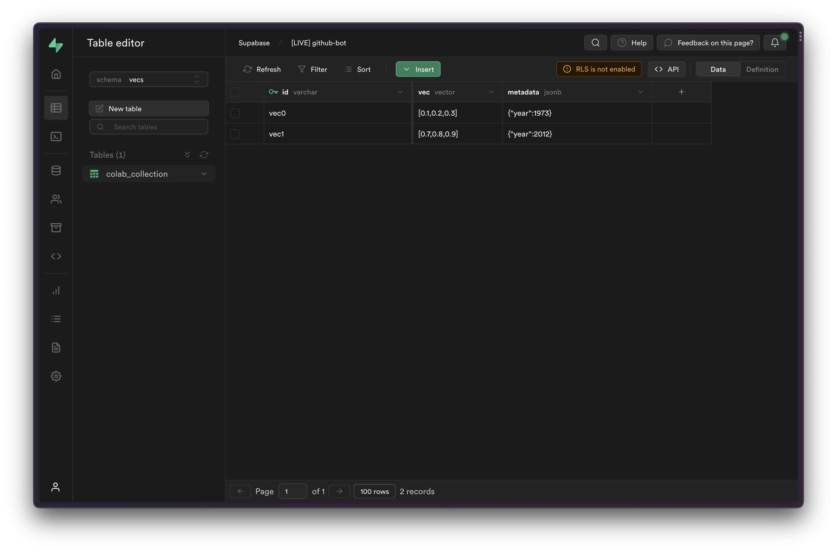 This guide will walk you through a basic "Hello World" example using Colab and Supabase Vecs. You'll learn how to: