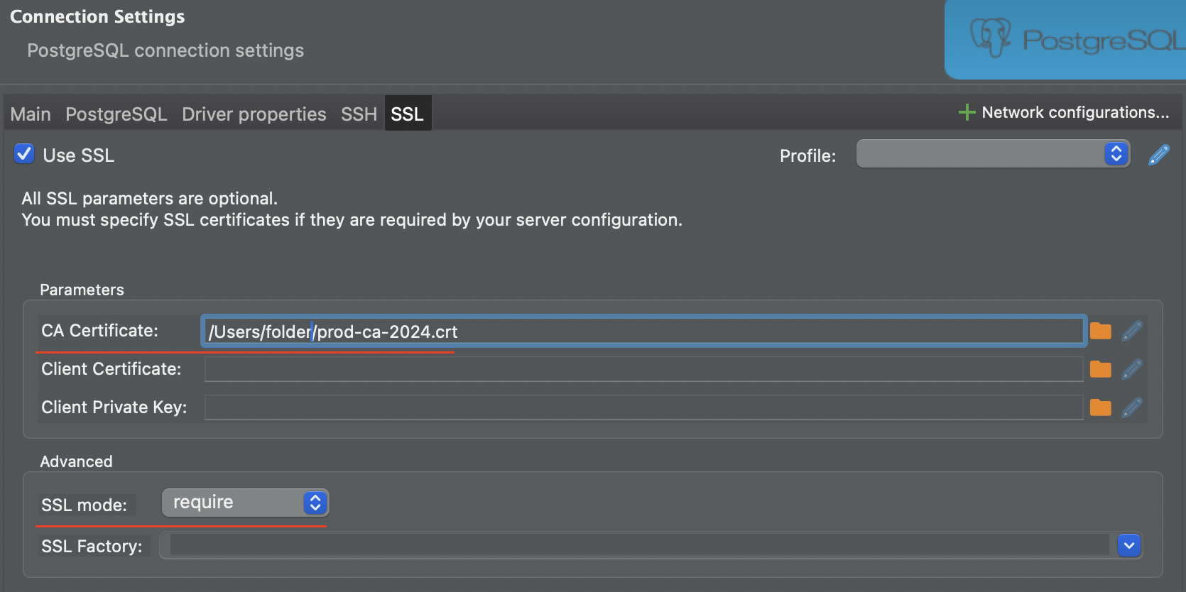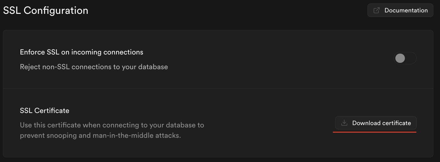 In the Database Settings, download your SSL certificate.