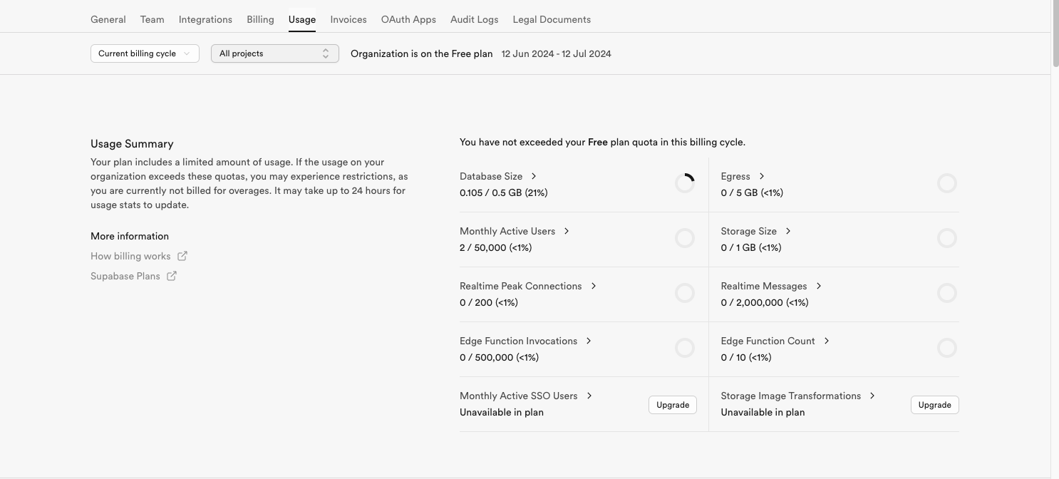 It is a little more tricky to understand metrics like realtime and egress due to being more complex to track usage compared to Database size or Function count. However, they will account for usage from all projects that are active or were active during your current billing cycle as well.